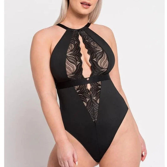 Scantilly Indulgence Stretch Lace Body In Black & Latte - Curvy Kate
