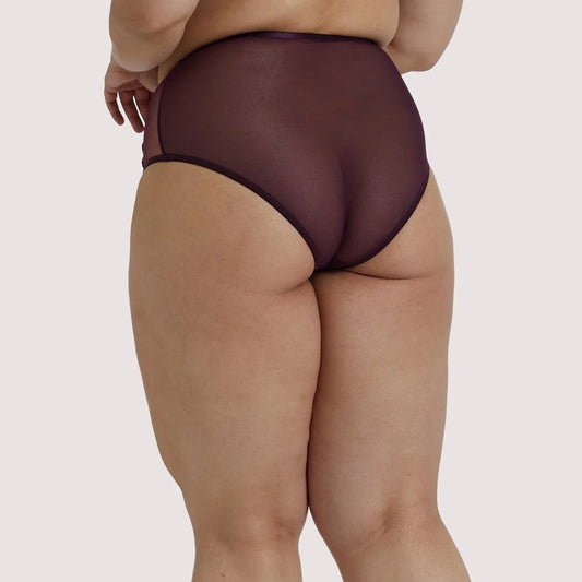 Kelly Mesh Brief With PVC Binding In Wine - Playful Promises