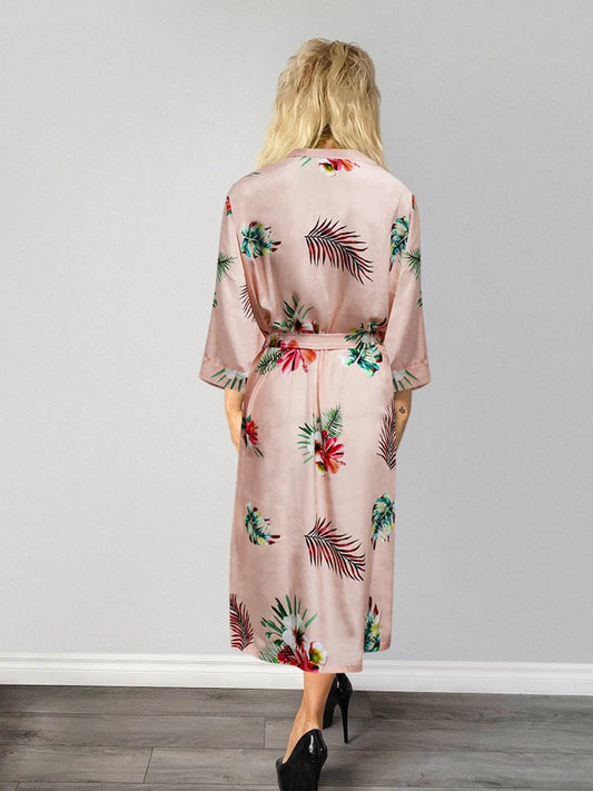Ladies Sexy Floral Rose Printed Long Robe In Peach - Lovely Lies