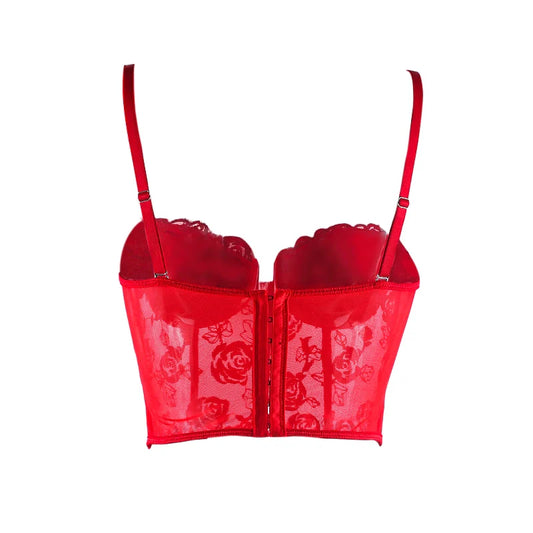 Ladies Sexy Floral Lace Strapless Corset in Red - Lovely Lies