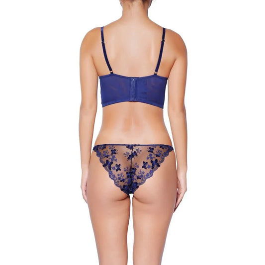 Ramona Strap Detail Illusion Mesh Plunge Bra In Cobalt - Playful Promises