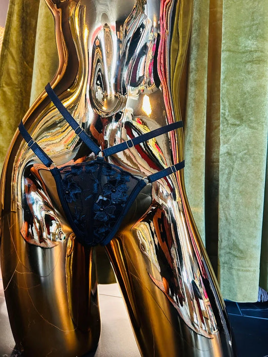 Strappy Thong In Black 3D Floral - Kilo Brava