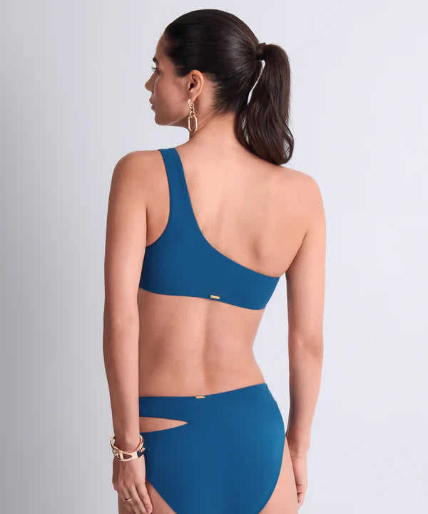 Extremely trendy, the Summer Essence highwaisted bikini brief is a decidedly modern and sexy piece. Extending up to the waist for a very sensual bodyshaping effect, it features a cut-out and rings that subtly show off hints of bare skin on one hip for an irresistibly eye-catching look.