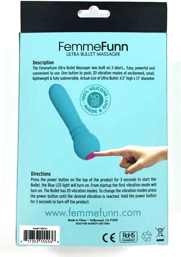 The most powerful mini massager on the market! Made of 100% Silicone inside & out! No Plastic used in this super powerful ULTRA BULLET! It has 20 vibration modes! 100% waterproof (fully submersible) USB Rechargeable Dimensions: 0.91 " Length: 4.3" Weight: 2.3 oz